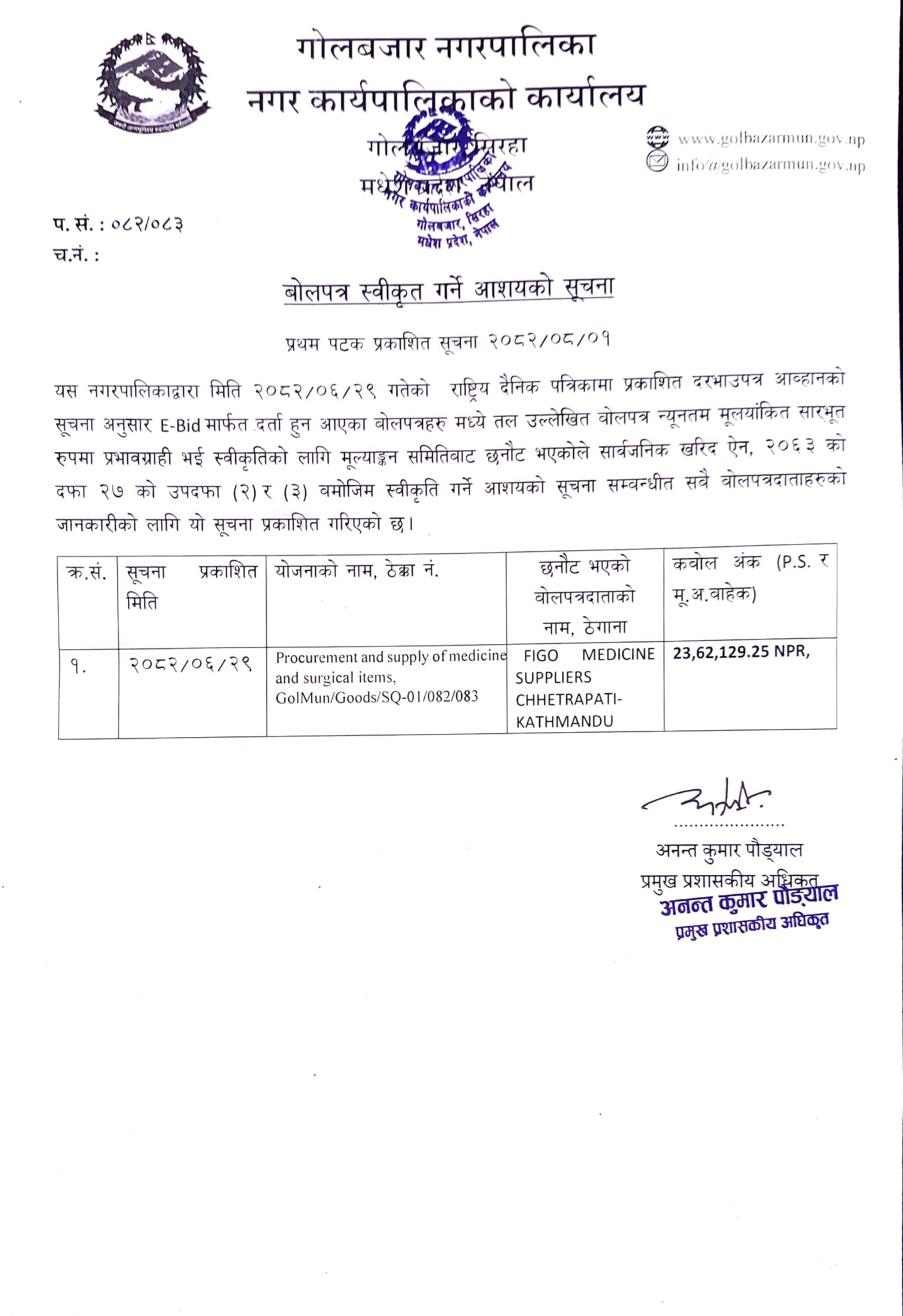 औषधी र सर्जिकल सामग्री खरिदको लागि बोलपत्र आह्वान सम्बन्धी सूचना ।