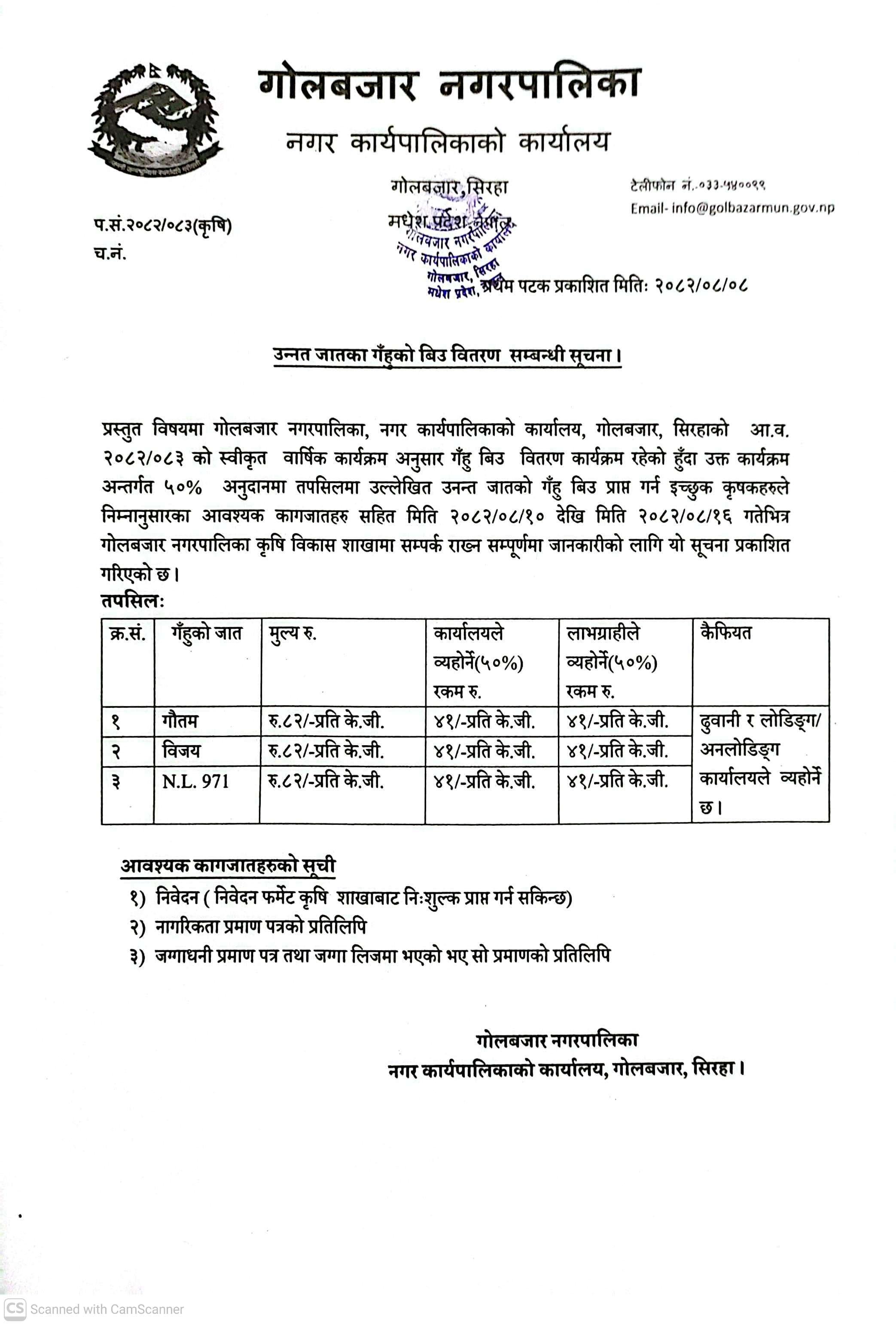 » उन्नत जातको गँहुको बीउ बितरण सम्बन्धी सूचना।