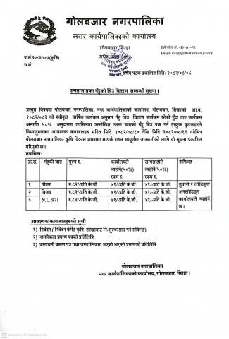 गँहु बीउ खरिद सम्बन्धी दरभाउ स्वीकृत गर्ने सम्बन्धि आश्यको सूचना ।