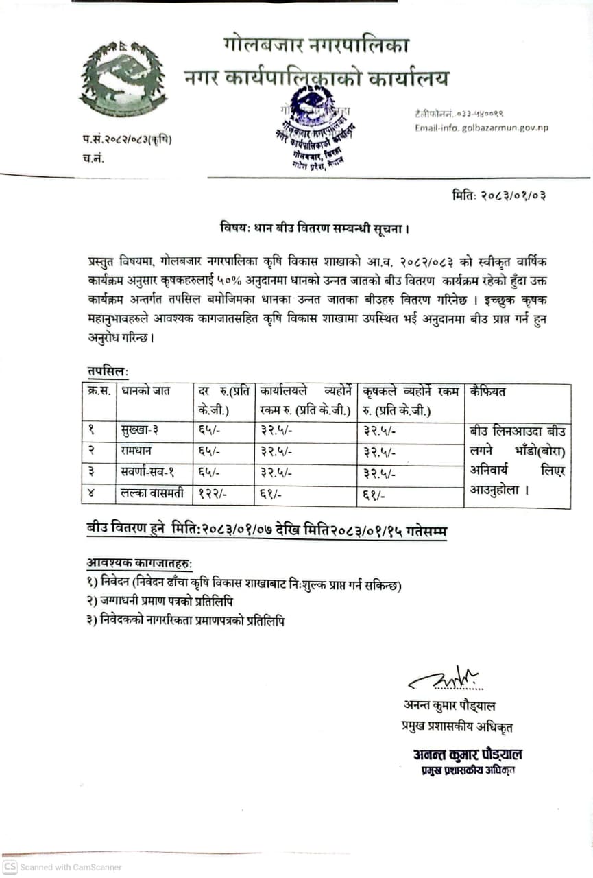 » धान बीउ वितरण सम्बन्धी सूचना ।