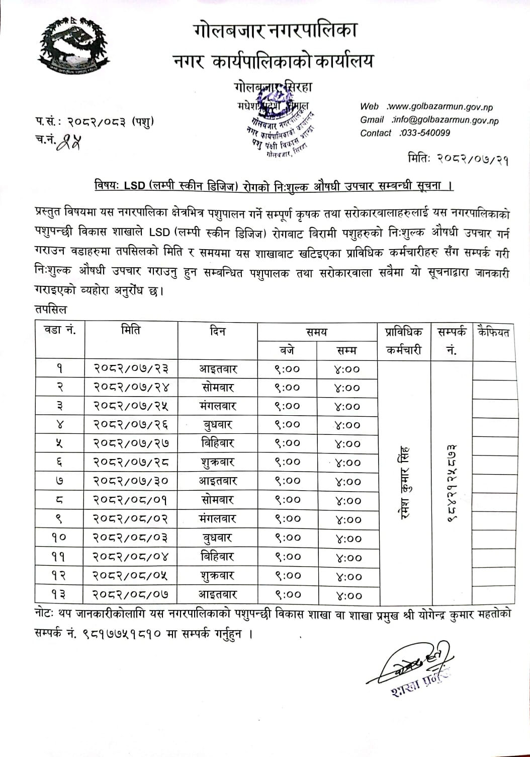 » लम्पी स्किन डिजज रोगको निःशुल्क औषधि उपचार सम्बन्धि सूचना ।