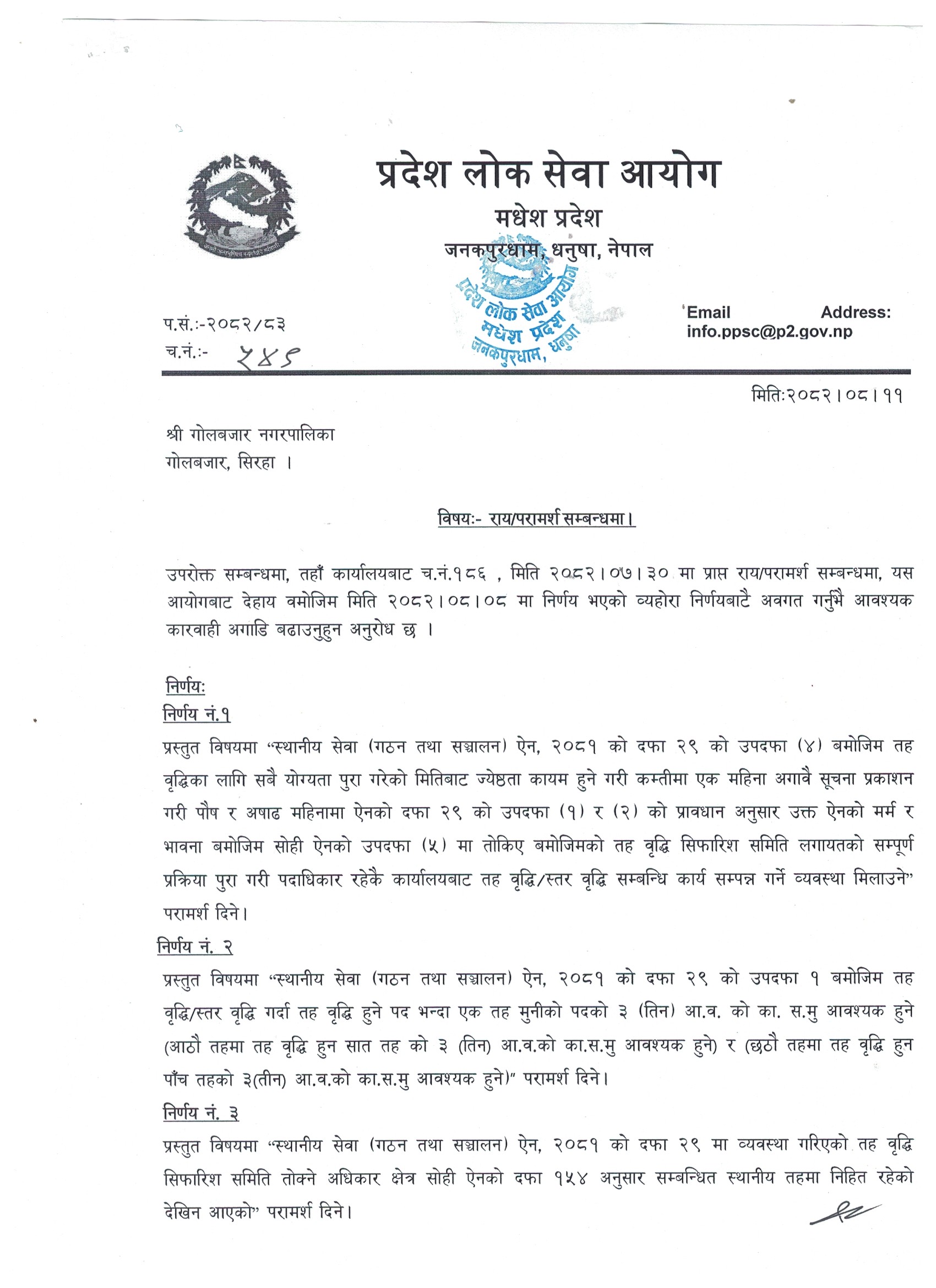 » तह बृद्धि/स्तर बृद्धि बढुवा सम्बन्धी सूचना ।