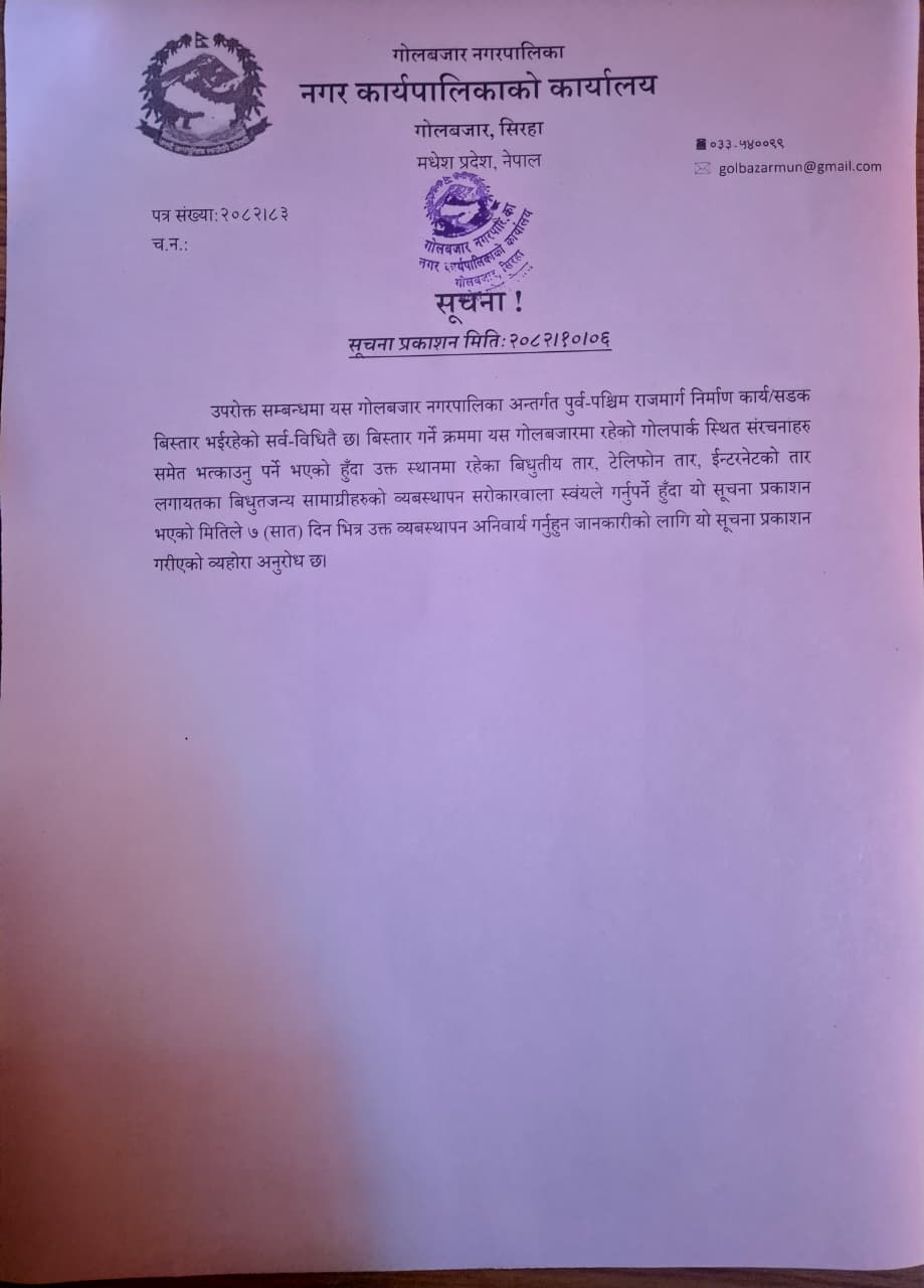 गोलबजार नगरपालिका, नगर कार्यपालिकाको कार्यालय गोलबजार, सिराहा