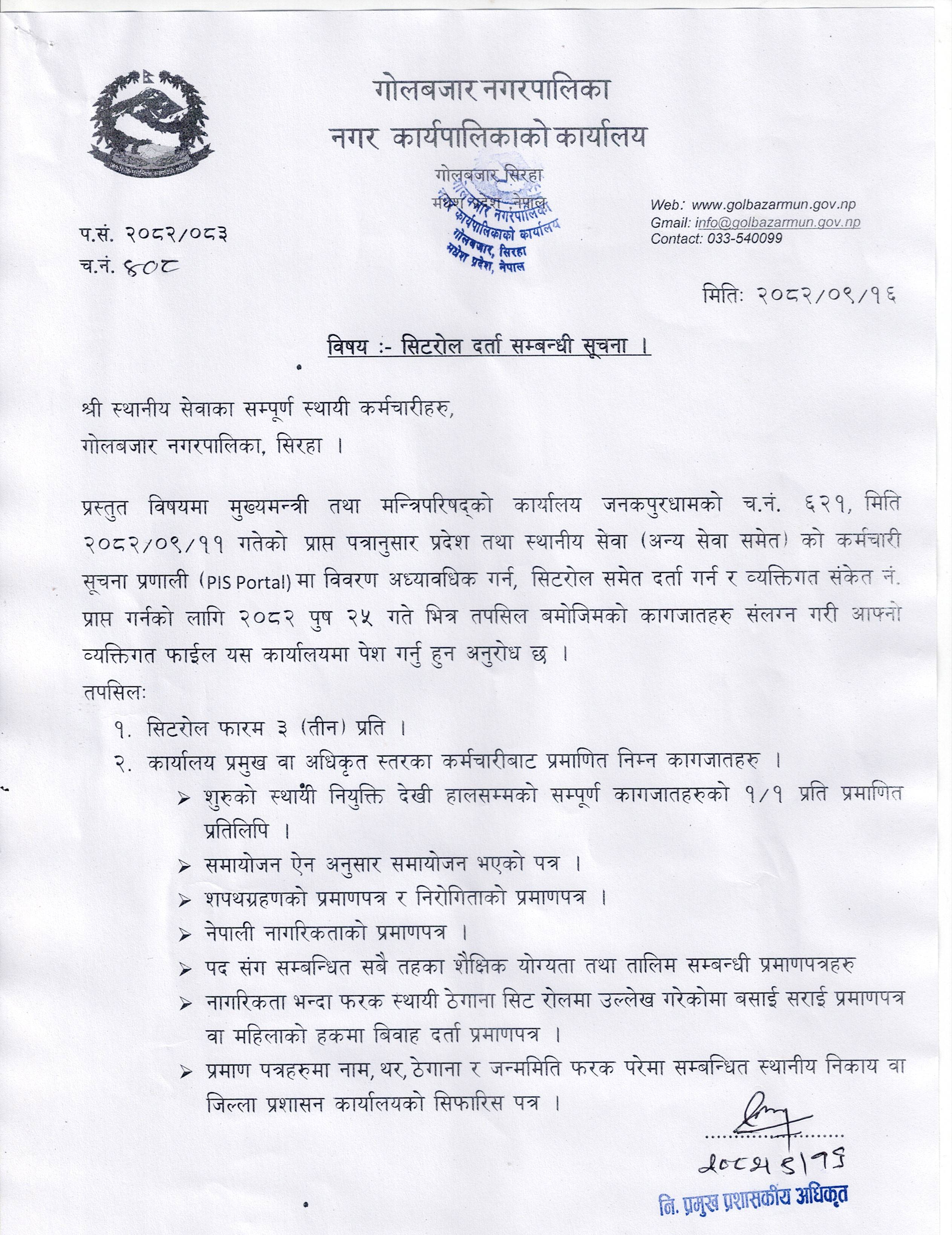 गोलबजार नगरपालिका, नगर कार्यपालिकाको कार्यालय गोलबजार, सिराहा