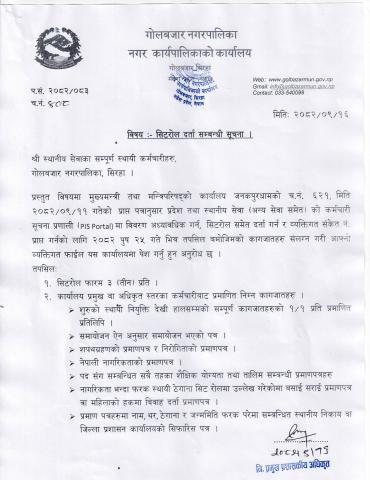 सिटरोल दर्ता सम्बन्धी सूचना ।