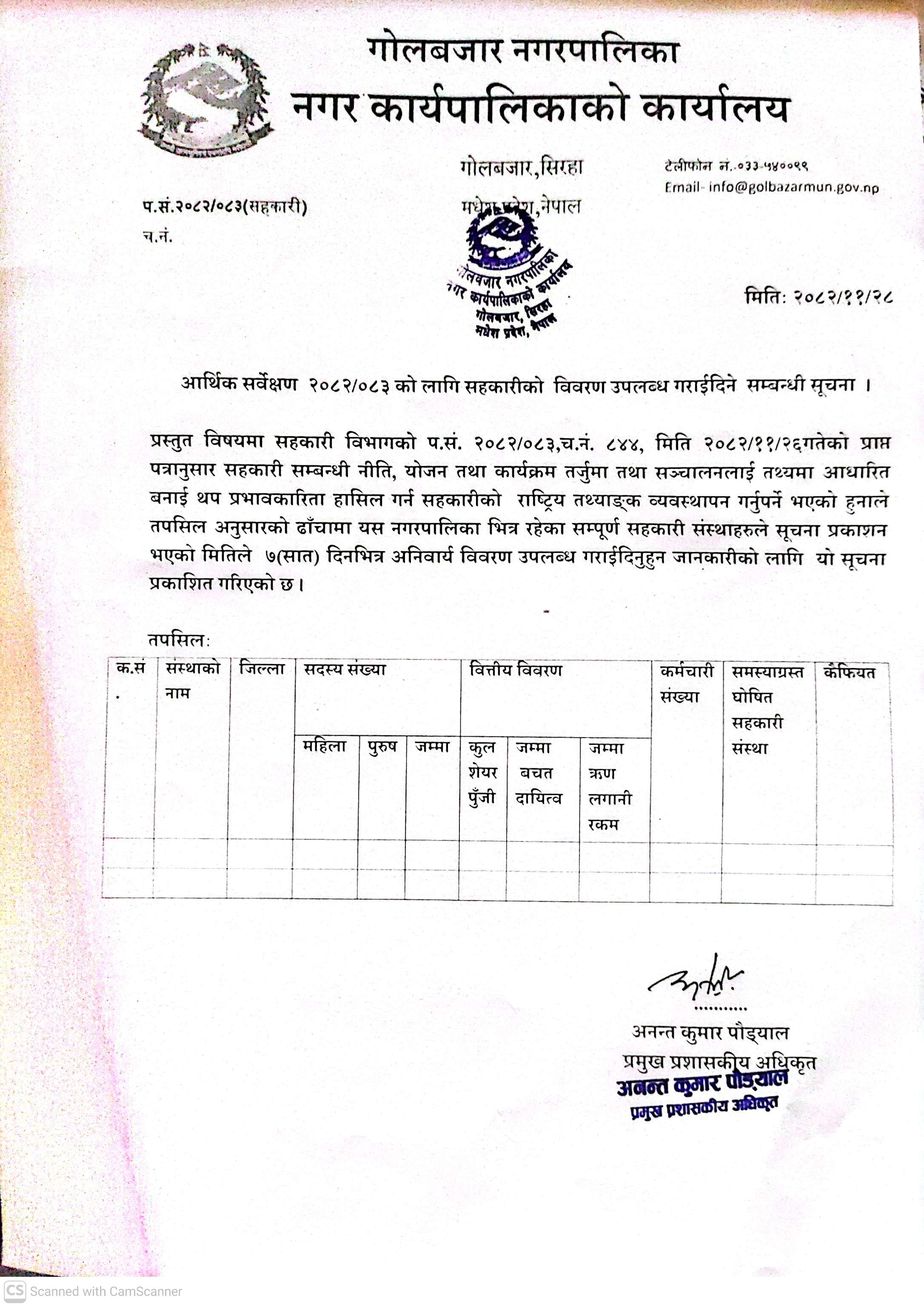 २०८२/०८३ को लागि सहकारीको विवरण उपलब्ध गराईदिने सम्बन्धी सूचना ।