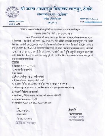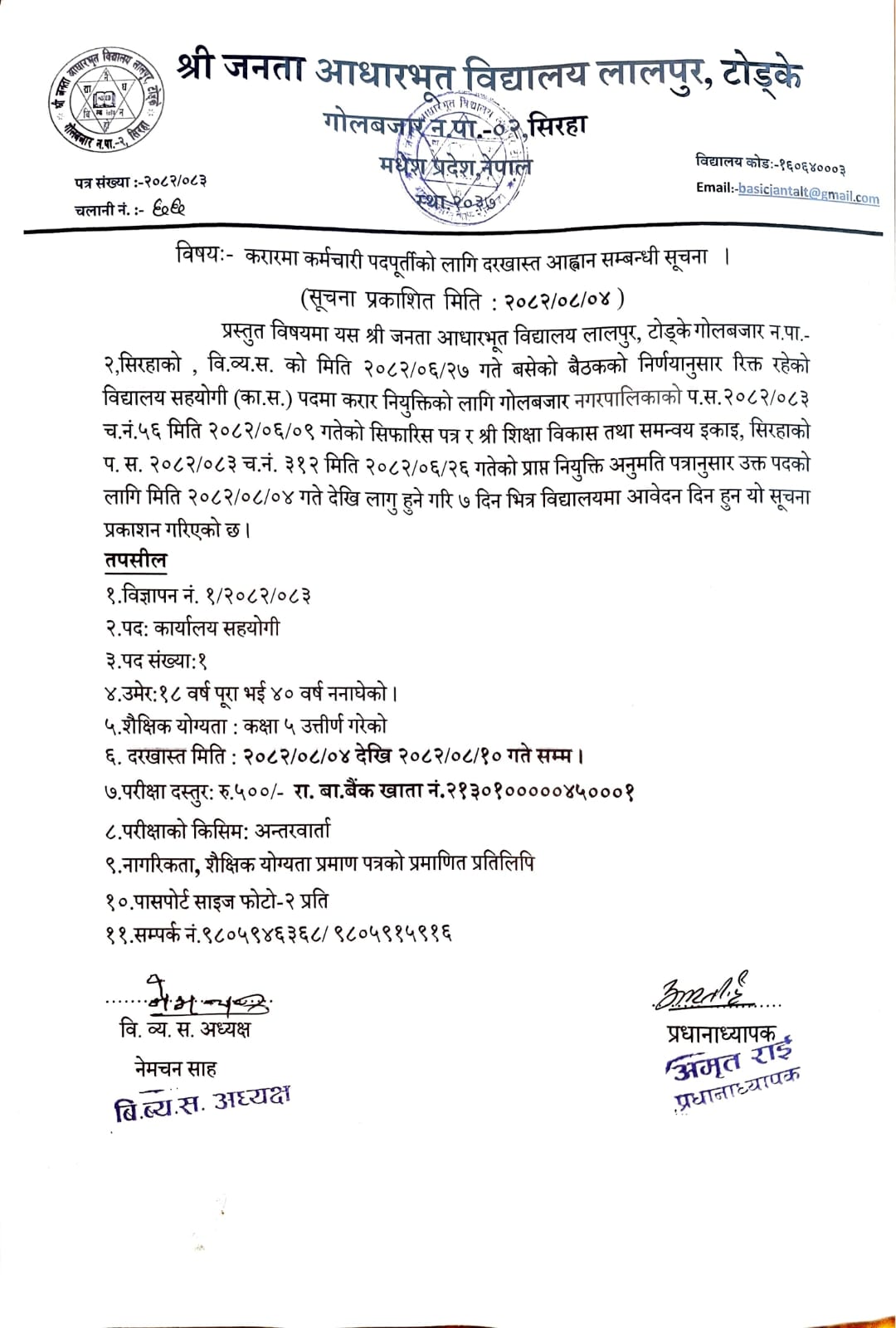 करारमा कर्मचारी पदपूर्तीको लागि दरखास्त आह्वान सम्बन्धी सूचना ।
