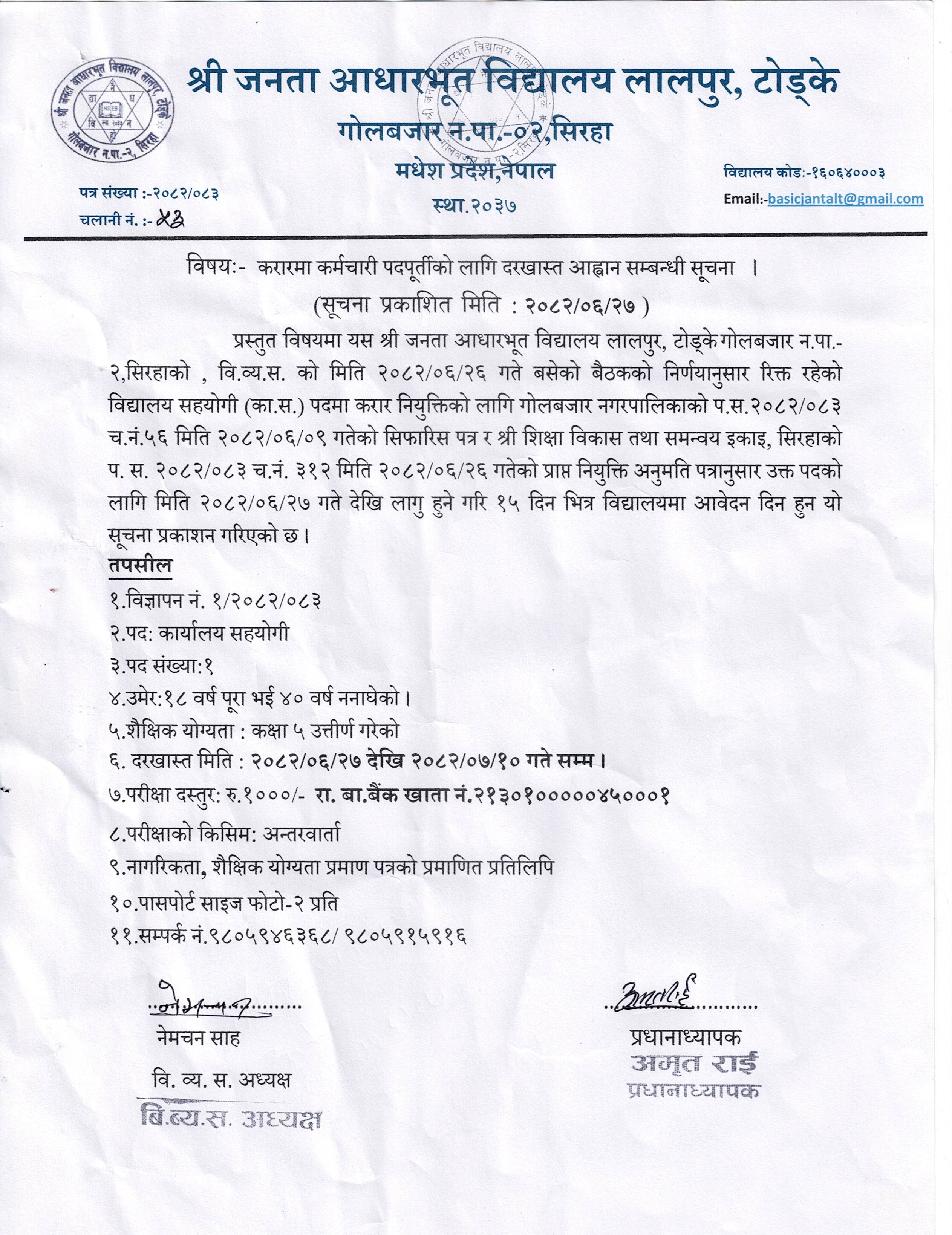 » करारमा कर्मचारी पदपूर्तीको लागि दरखास्त आह्वान सम्बन्धी सूचना ।
