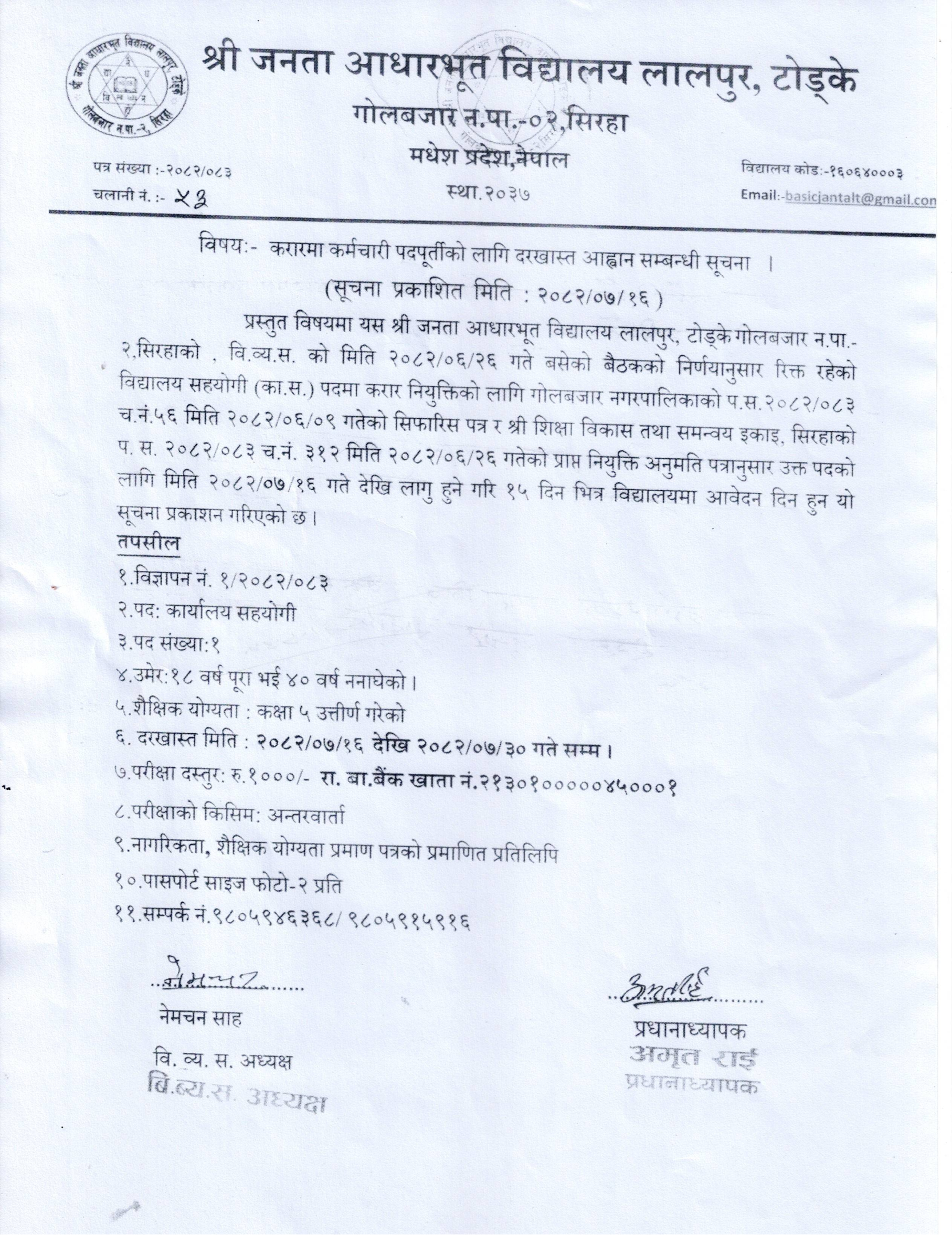 » करारमा कर्मचारी पदपूर्तीको लागि दरखास्त आह्वान सम्बन्धी सूचना ।