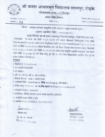 करारमा कर्मचारी पदपूर्तीको लागि दरखास्त आह्वान सम्बन्धी सूचना ।