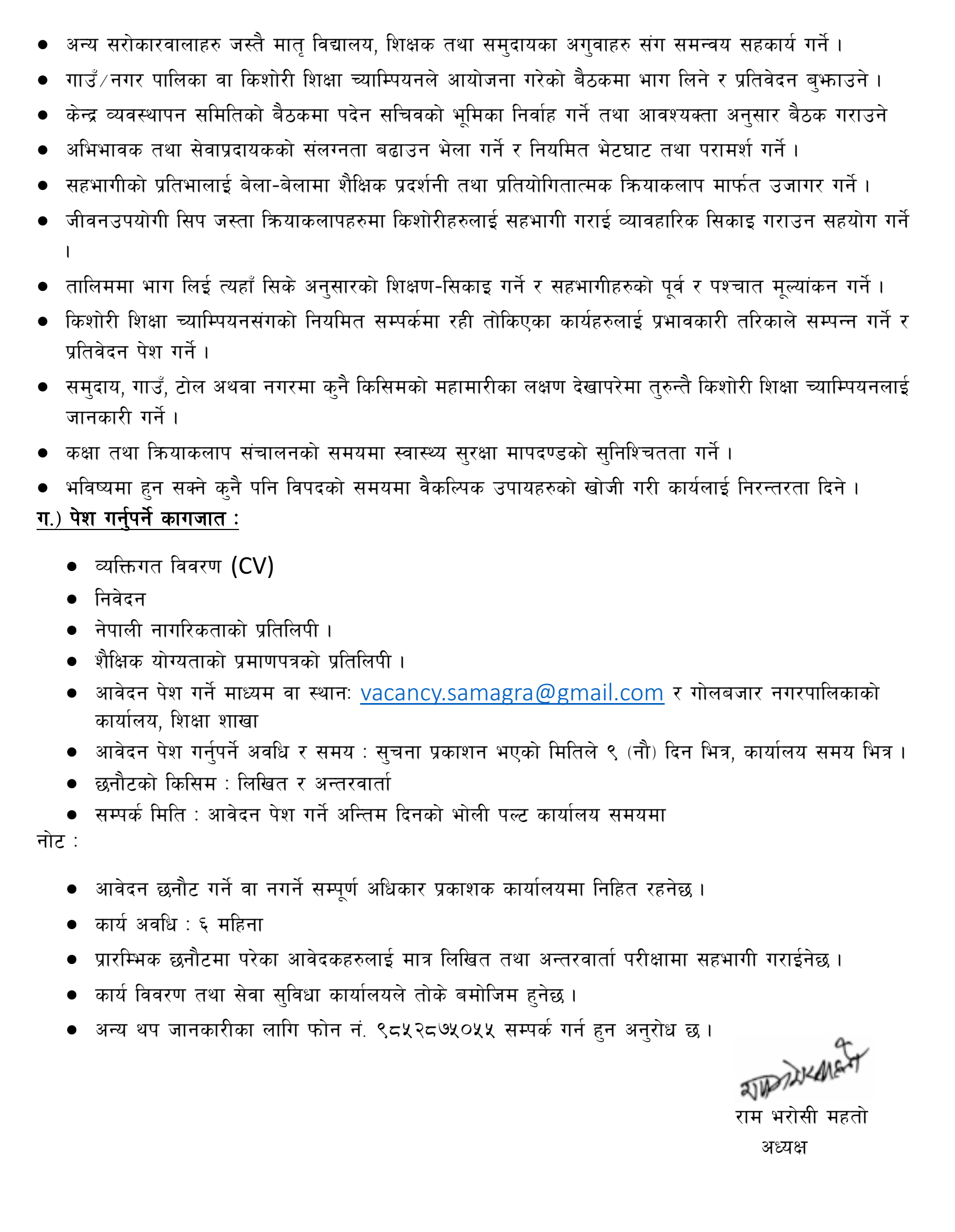 » किशोरी शिक्षा कार्यक्रम सम्बन्धमा ।