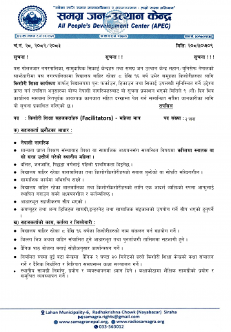 करारमा कर्मचारी पदपूर्तीको लागि दरखास्त आह्वान सम्बन्धी सूचना ।