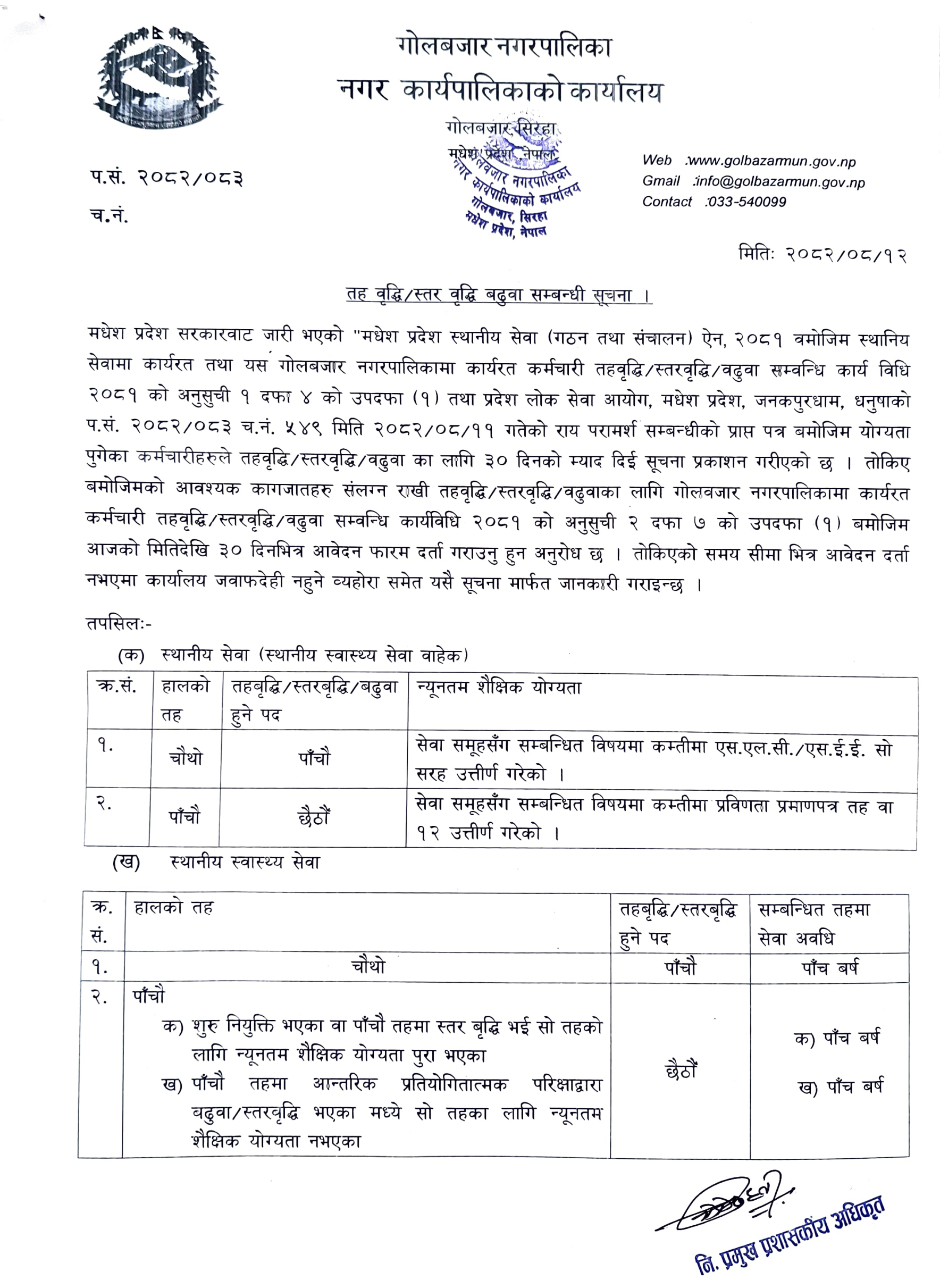 » तह बृद्धि/स्तर बृद्धि बढुवा सम्बन्धी सूचना ।