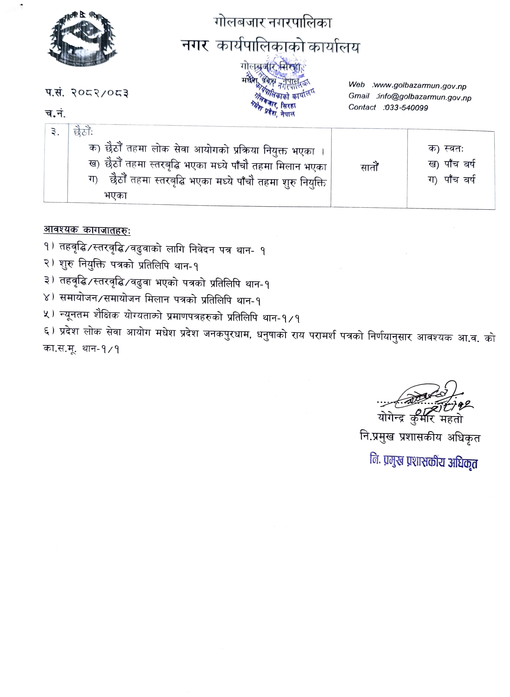 गोलबजार नगरपालिका, नगर कार्यपालिकाको कार्यालय गोलबजार, सिराहा