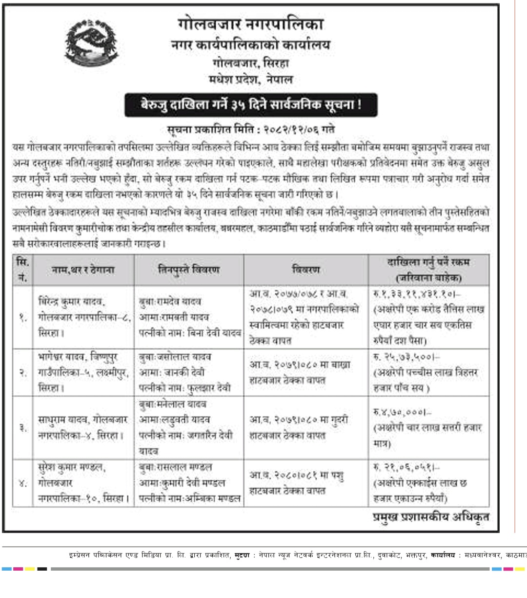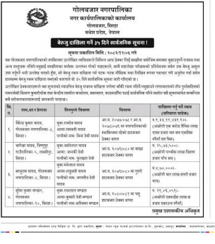 बेरुजु दाखिला गर्ने ३५ दिने सार्वजनिक सूचना !