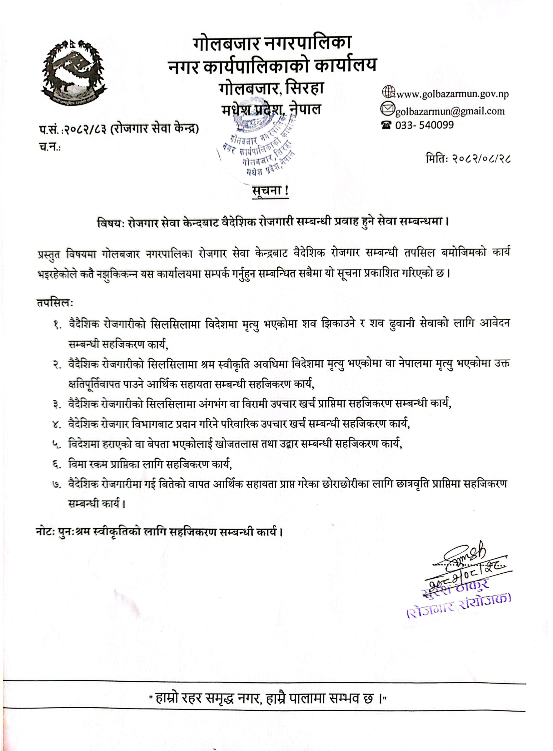 » रोजगार सेवा केन्द्रबाट वैदेशिक रोजगारी सम्बन्धी प्रवाह हुने सेवा सम्बन्धमा ।