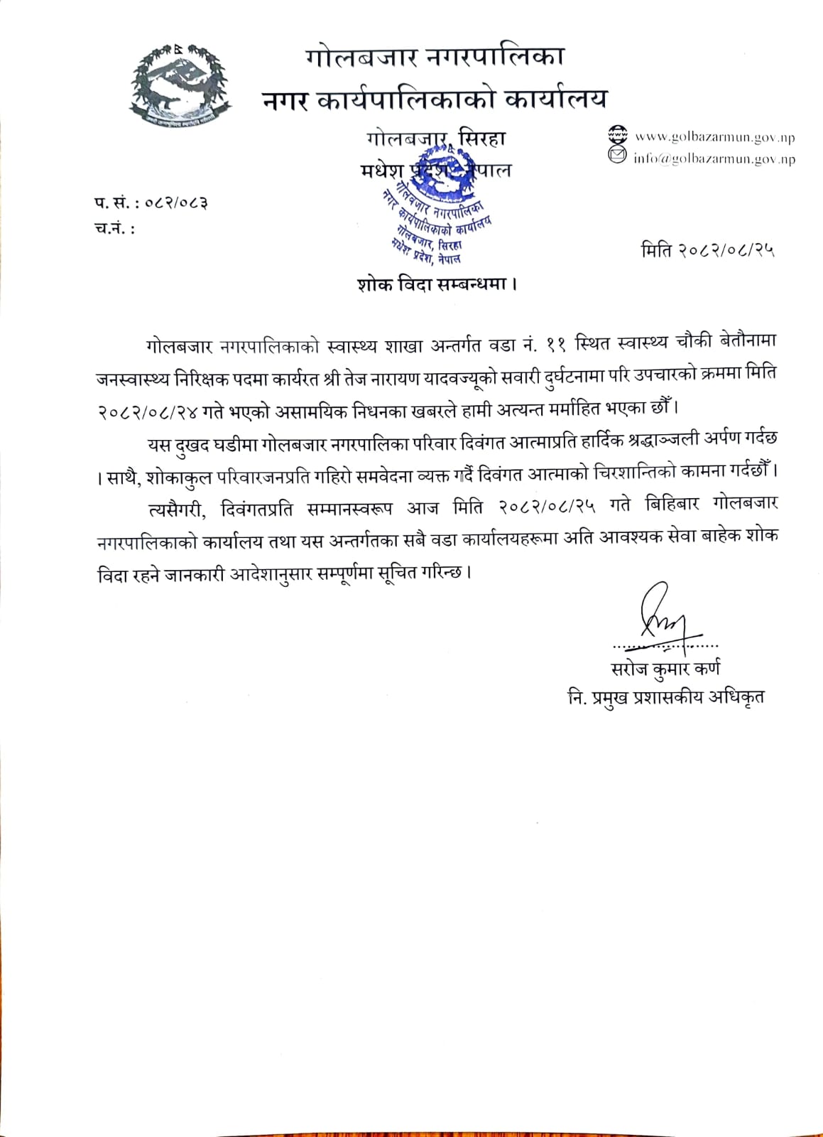 गोलबजार नगरपालिका, नगर कार्यपालिकाको कार्यालय गोलबजार, सिराहा