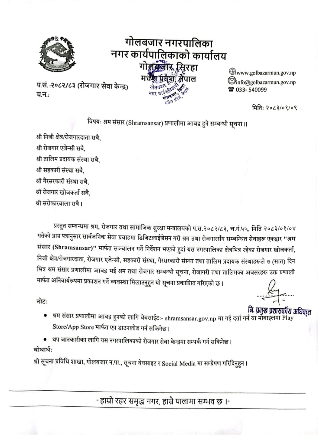 » श्रम संसार (Shramsansar) प्रणाली आवद्ध हुने सम्बन्धी सूचना ।