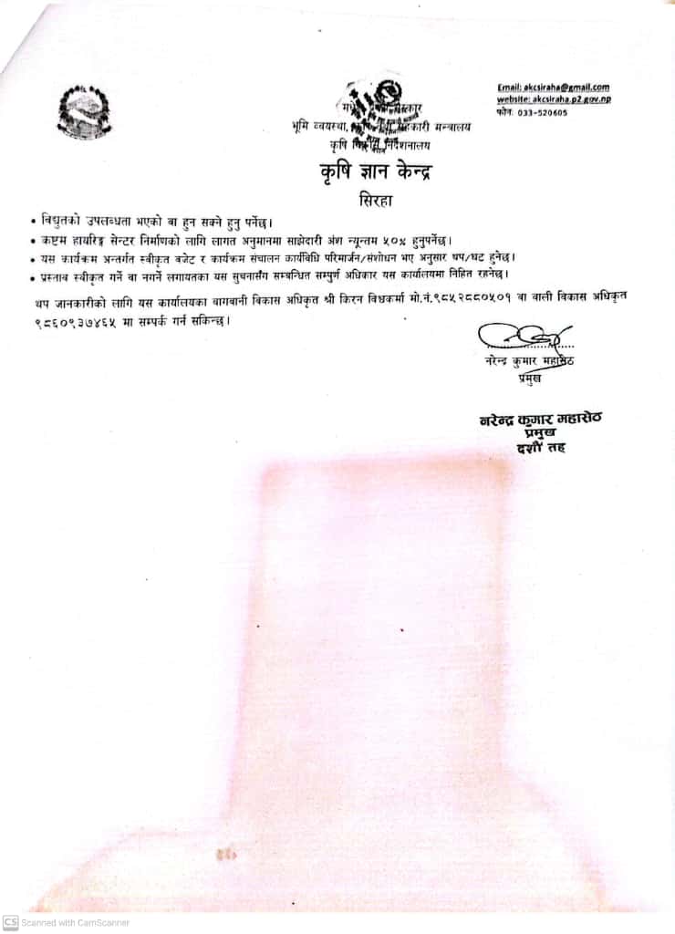 उनन्त बीउ उत्पादकका लागि पू्र्वाधार तथा प्रशोधन विकास सहयोग कार्यक्रम संचालनका लागि प्रस्ताव आवह्वानको पुनः सूचना ।