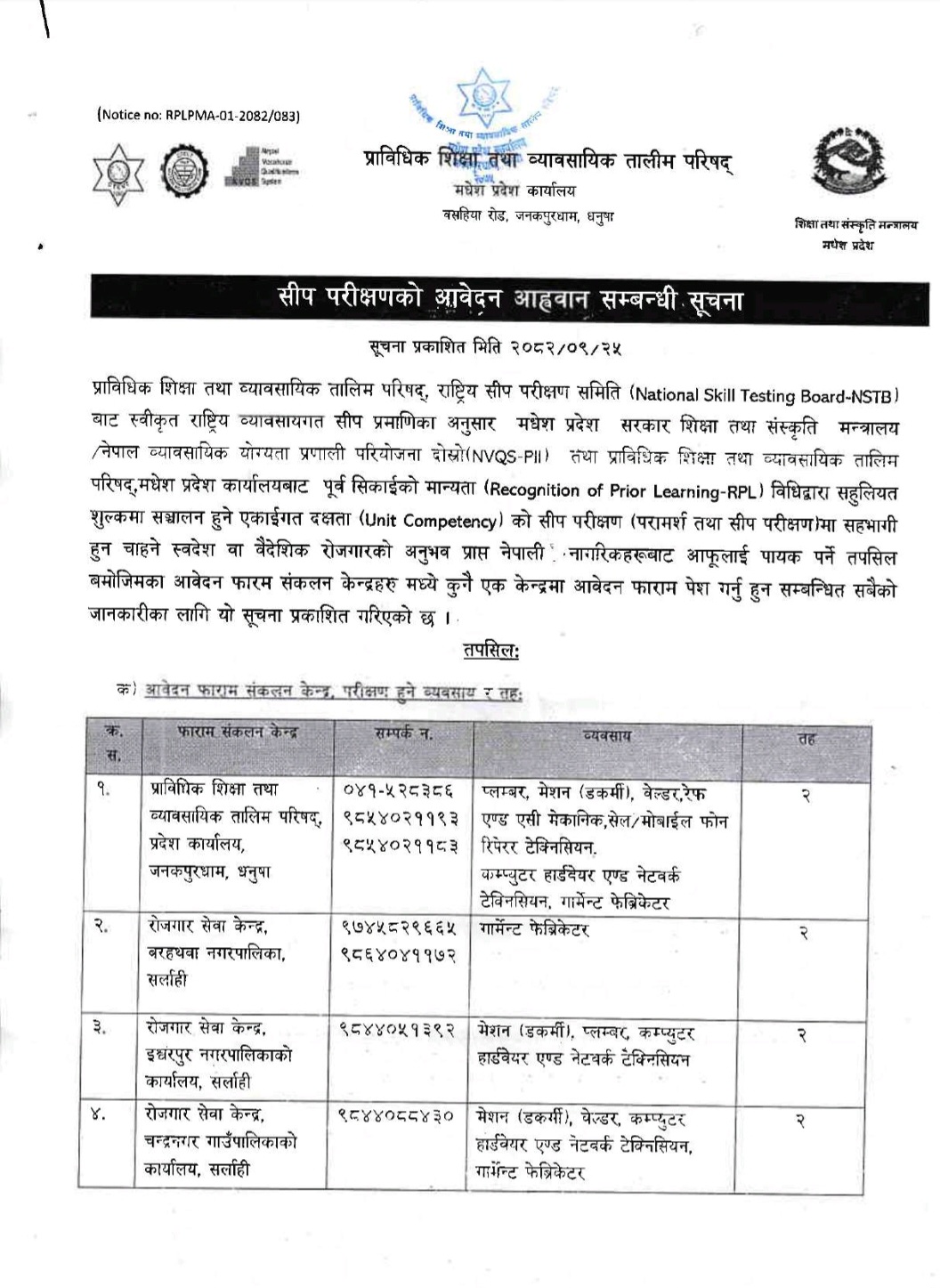 » सीप परीक्षणको आवेदन आह्वान सम्बन्धी सूचना ।