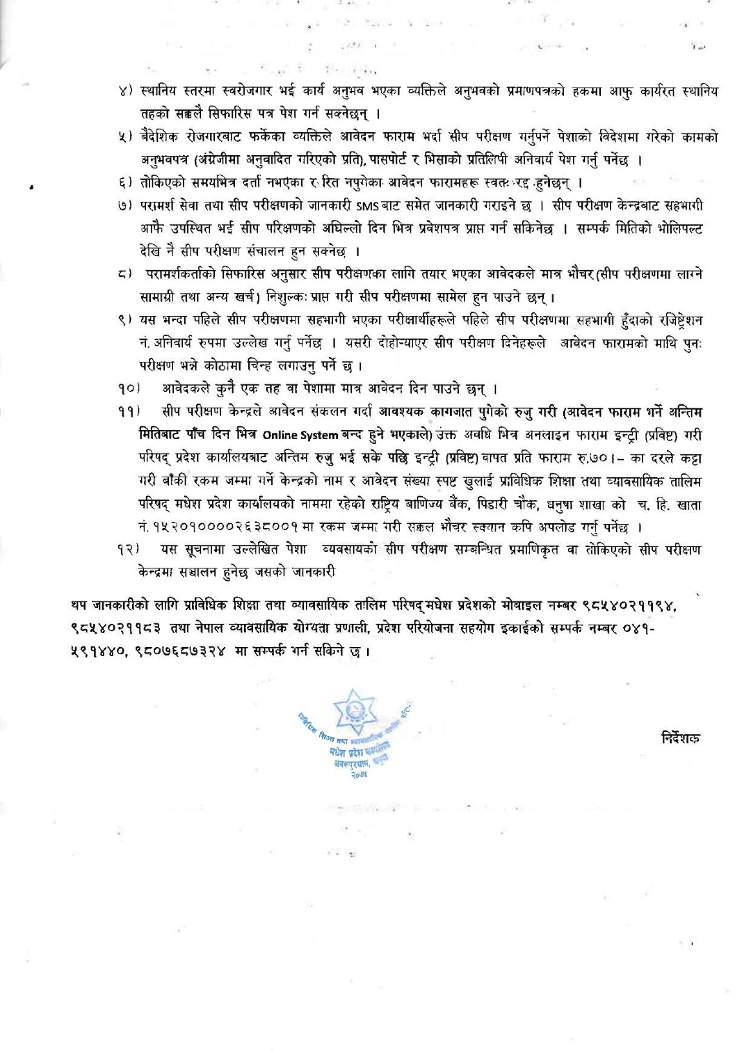 सीप परीक्षणको आवेदन आह्वान सम्बन्धी सूचना ।