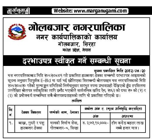 » हाटबजार ठेक्का दरभाउपत्र स्वीकृत गर्ने सम्बन्धी सूचना ।